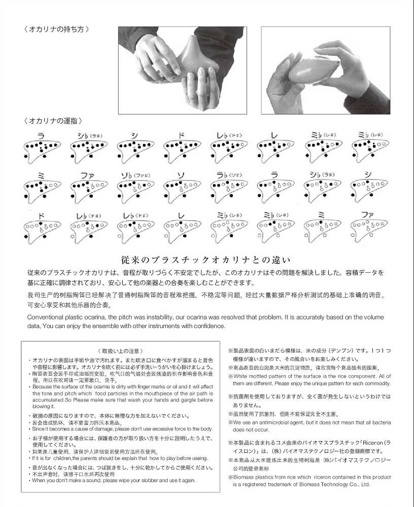 It is a light, non-cracking, environmentally friendly plastic ocarina.